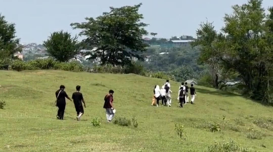 Mereka melakukan aktivitas trekking menuju kawasan bukit sekaligus melaksanakan aksi peduli lingkungan dengan membersihkan sampah di sepanjang jalur pendakian dan area sekitar bukit.