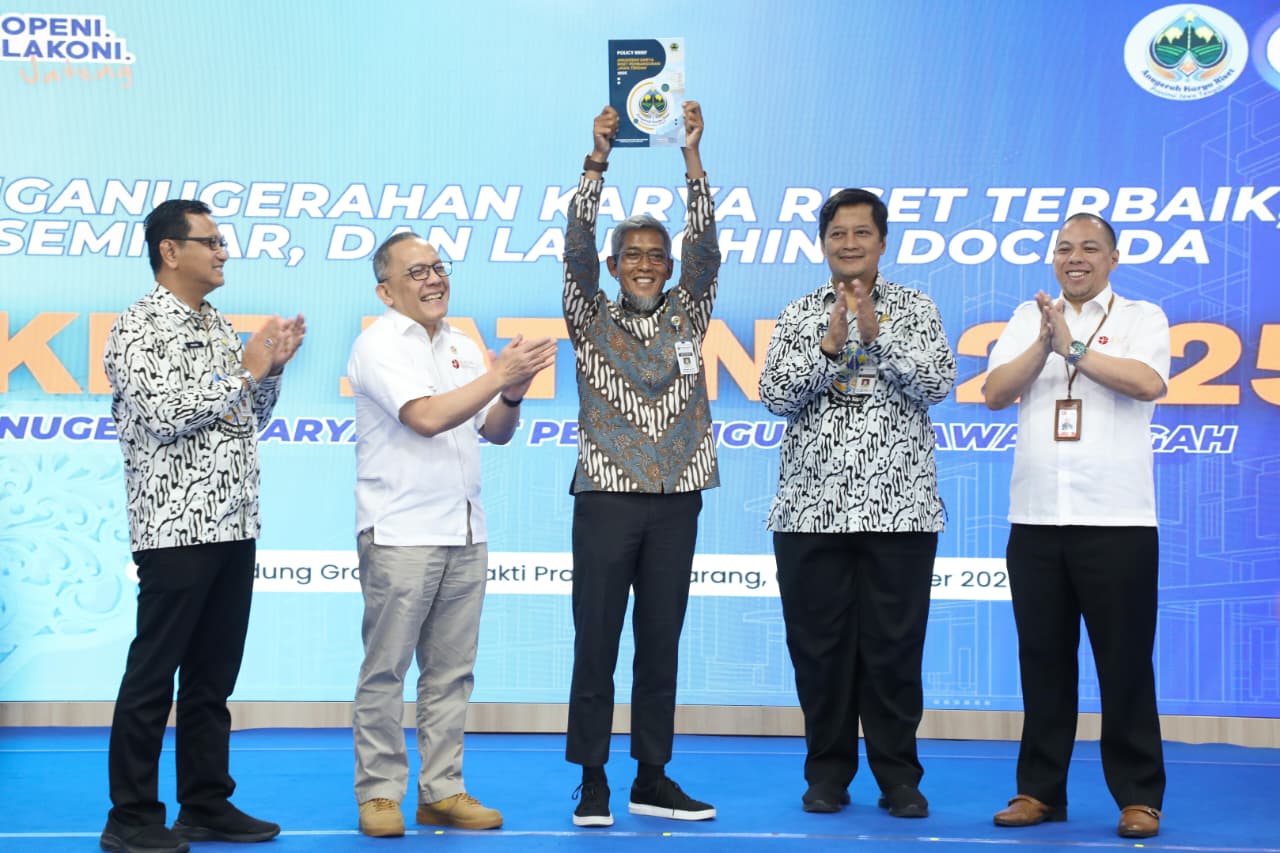 “Inovasi-inovasi harus dilakukan supaya lebih ekspansif dan lebih bisa berkontribusi untuk meningkatkan kesejahteraan masyarakat Jawa Tengah,” kata Sekretaris Daerah (Sekda) Provinsi Jawa Tengah, Sumarno dalam acara Anugerah Karya Riset Pembangunan Jawa Tengah 2025 dan peluncuran DocRIDa, di Gedung Gradhika Bhakti Praja, Kota Semarang, Kamis, (6/11/2025).