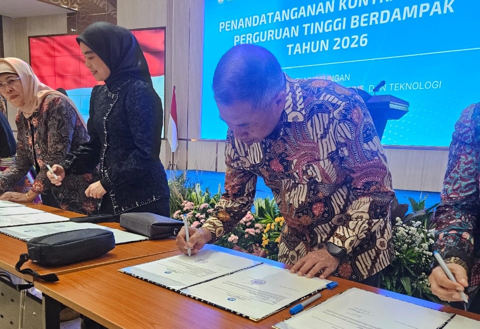 ”Penandatanganan kontrak kinerja ini merupakan instrumen strategis untuk memastikan keterhubungan antara perencanaan, pelaksanaan, dan capaian kinerja dalam mendukung transformasi pendidikan tinggi, riset, serta sains dan teknologi yang berdampak bagi masyarakat,” ungkap Rektor.(sup”)