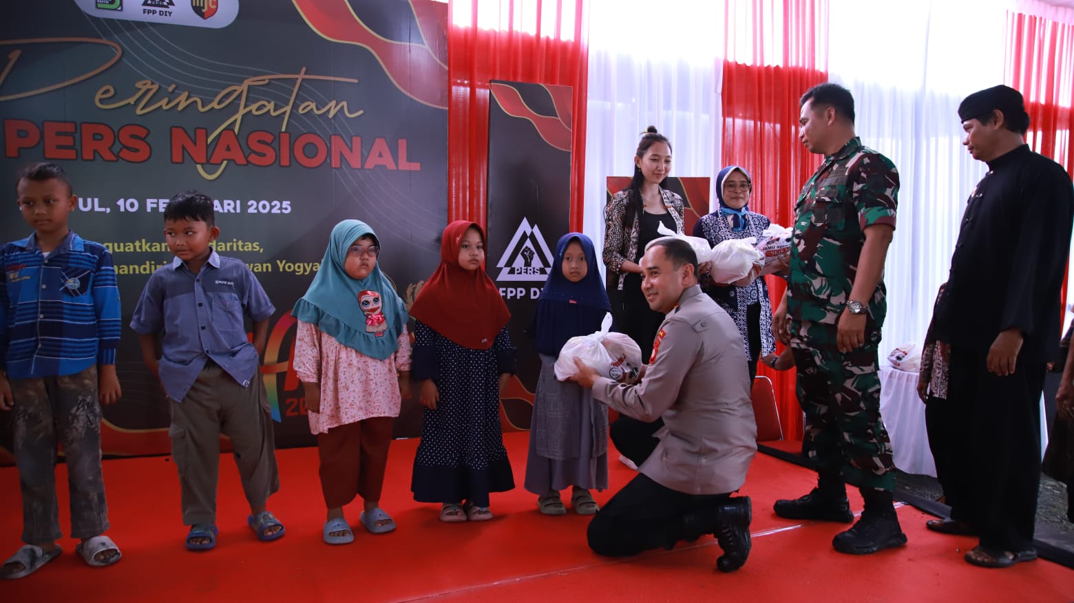 Dalam puncak peringatan Hari Pers Nasional (HPN) 2025 DIY, FPP DIY juga menyerahkan santunan bantuan sosial kepada anak yatim piatu, difabel maupun keluarga miskin yang diusulkan wartawan dari kabupaten dan kota se- DIY. (wur)