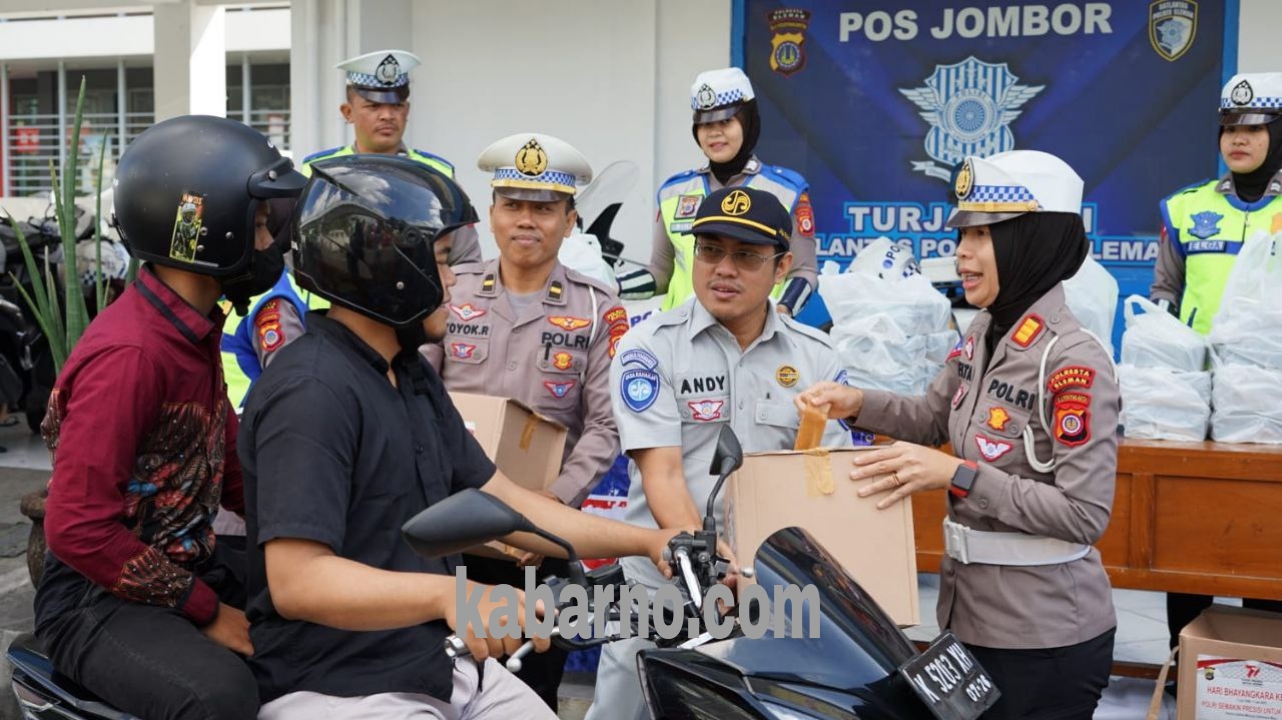 Sleman,kabarno.com – Dalam rangka HUT Bhayangkara ke 77, PT Jasa Raharja Cabang D.I Yogyakarta melalui KPJR TK II Sleman bersama Satlantas Polresta Sleman melaksanakan Jumat Berkah dan pembagian helm kepada pengendara kendaraan yang tertib berlalu lintas.